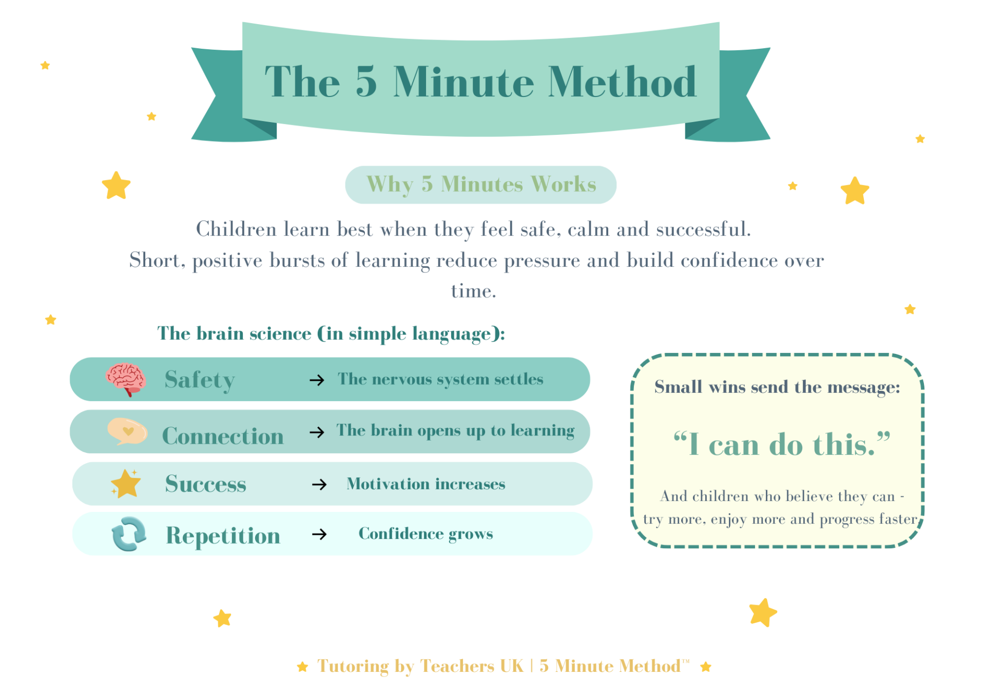 Create calm, positive learning moments at home in just five minutes. The 5 Minute Method follows a simple loop - Connect, Tiny Task, Praise - helping children feel safe, confident and ready to learn without overwhelm.